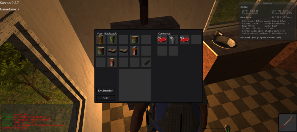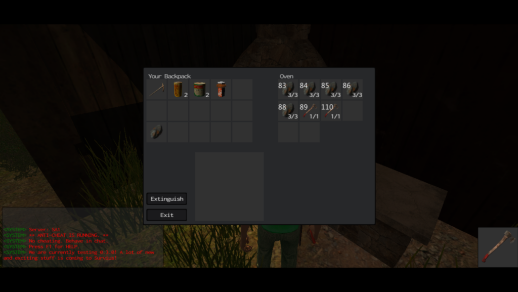 If you gather meat from an animal, or water from a well or lake, you need to cook it before it is safe to consume. For this you can either craft a campfire, or use a stove in one of the houses on the island. To get a fire going you need logs and matches.