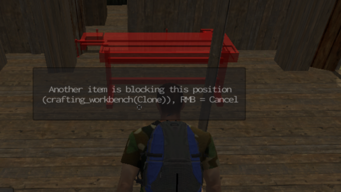 Once you have enough, pick a good location and place your workbench. This becomes your personal crafting hub, accessible with [E] Use.